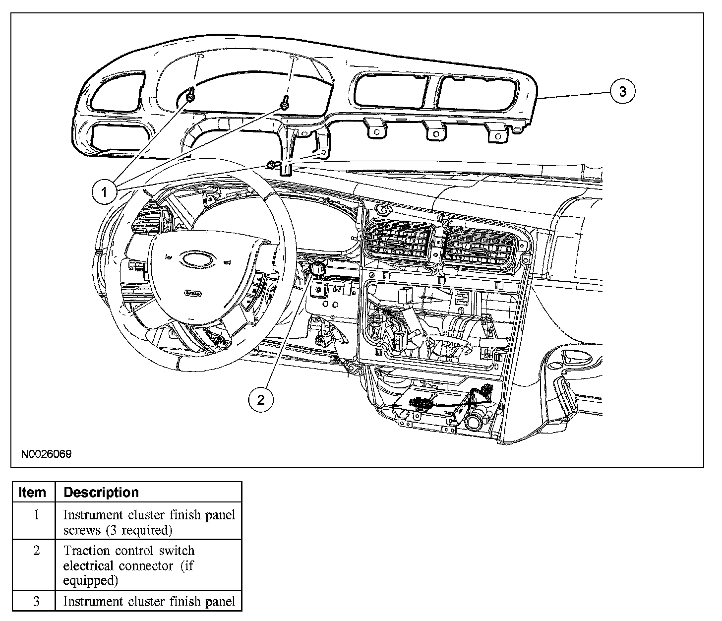Remove the 3 screws and the instrument cluster finish panel.
