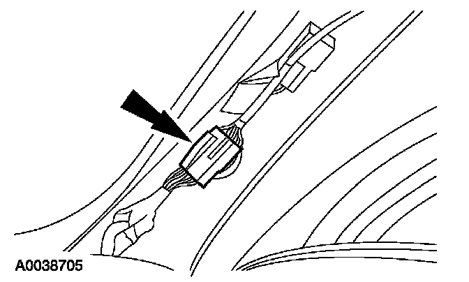 5. Located on the RH A-pillar, disconnect the headliner wiring harness electrical connector.