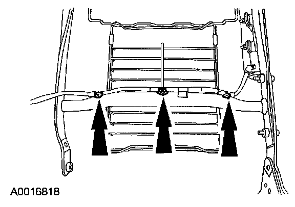 6. NOTE: If the pin-type retainers are damaged, install new retainers. This will keep the wiring harness routed correctly.