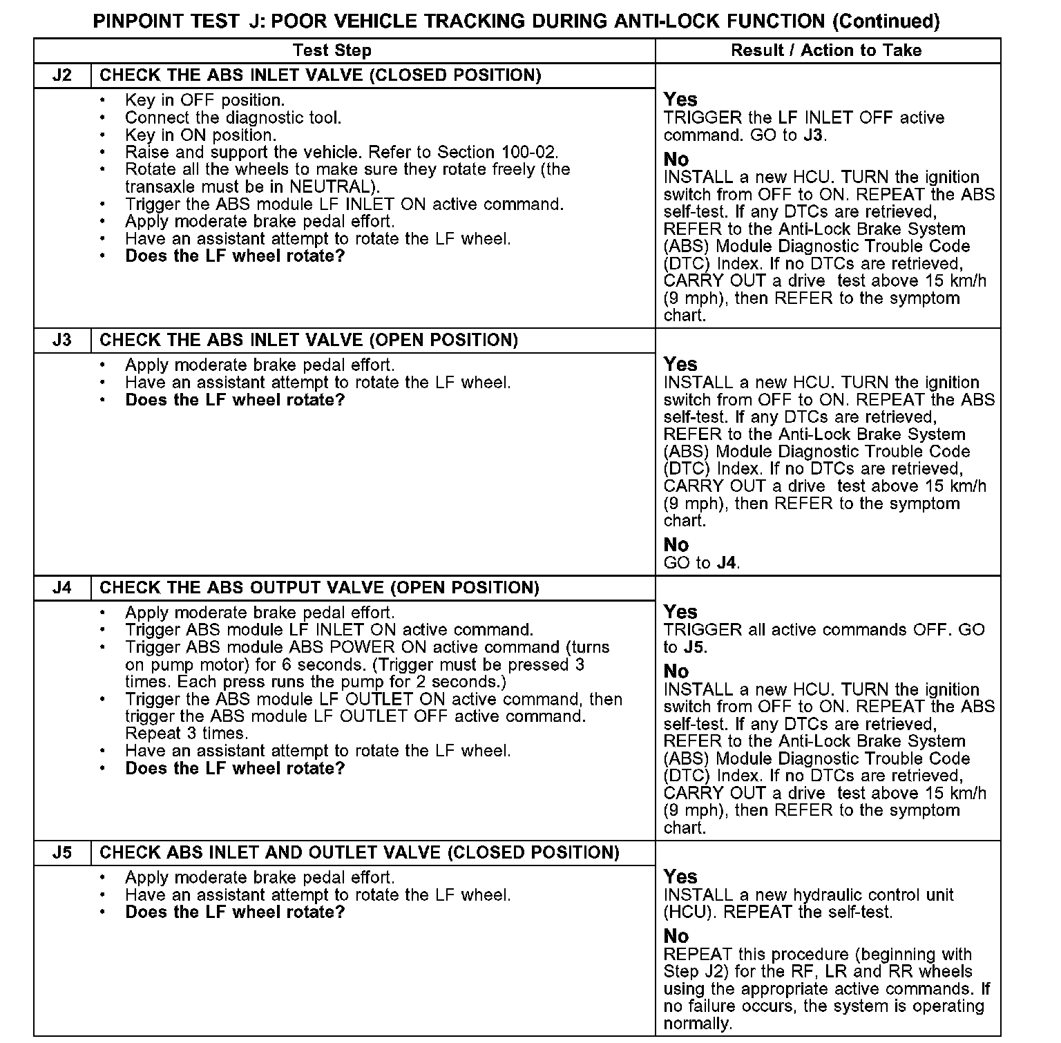 Pinpoint Test J: Poor Vehicle Tracking During Anti-Lock FunctionNormal Operation