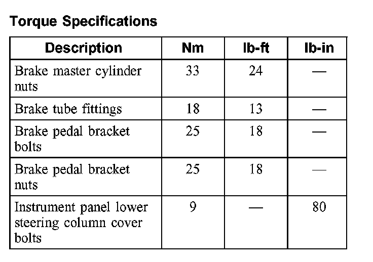 Torque Specifications: