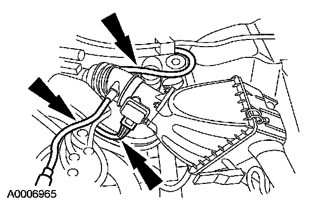 2. Disconnect the mass air flow (MAF) sensor electrical connector and the breather tubes.