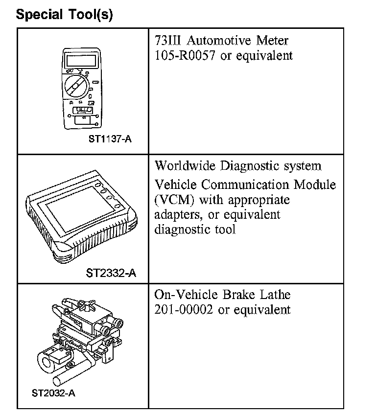 Special Tool(s) Used With Diagnosis and Testing