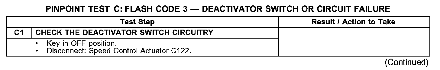 PINPOINT TEST C: FLASH CODE 3 - DEACTIVATOR SWITCH OR CIRCUIT FAILUREC1: