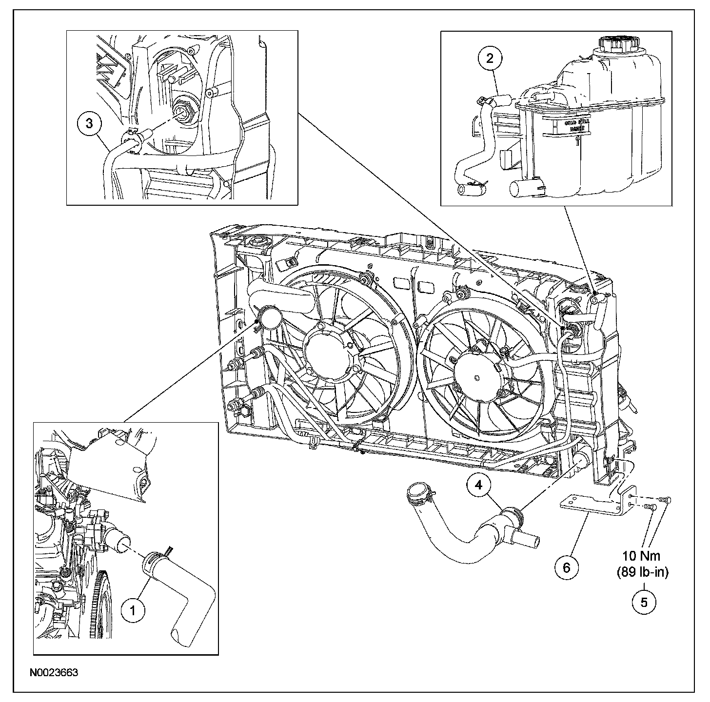 5. Disconnect the degas bottle-to-radiator hose and position aside.