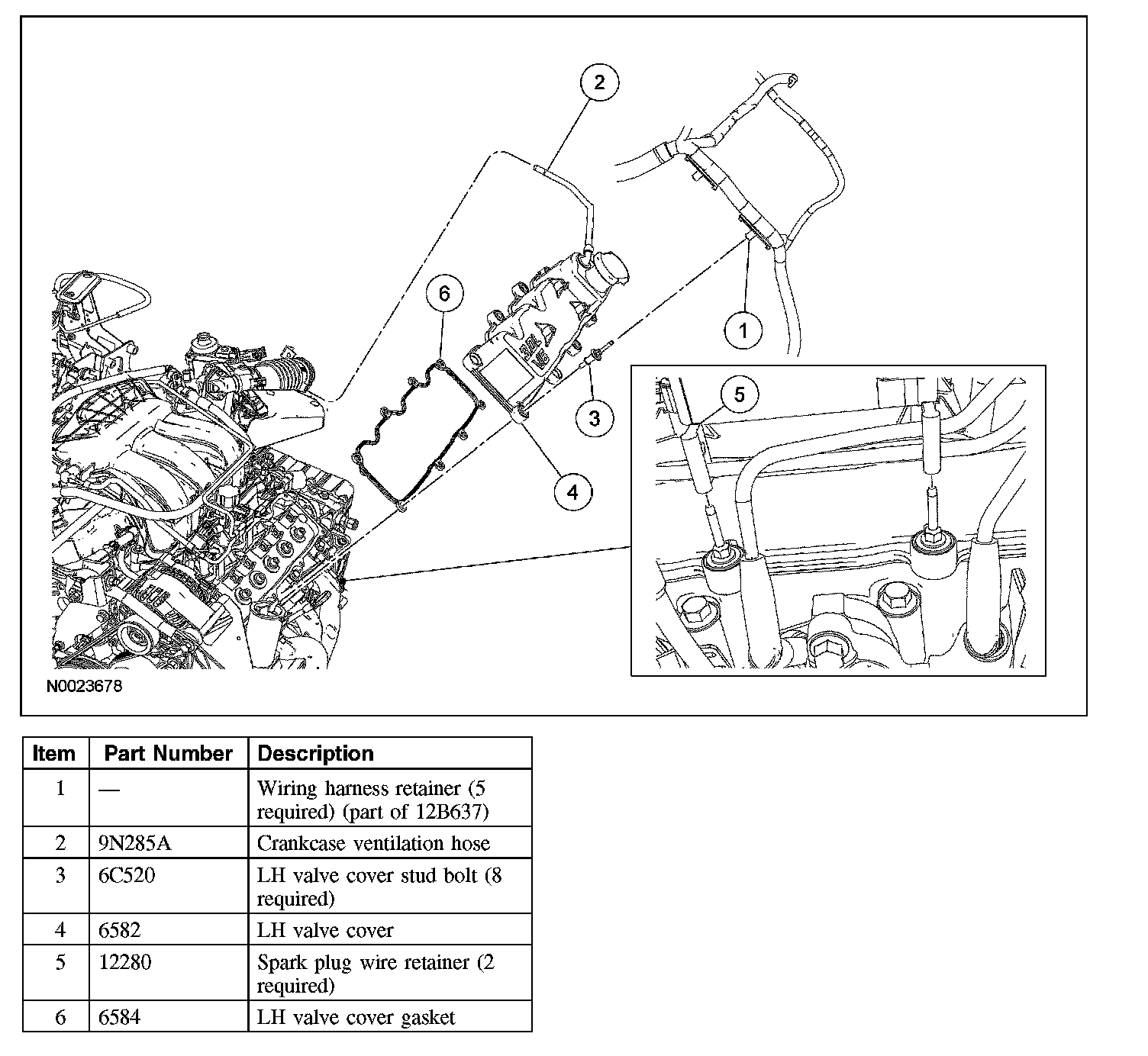 4. Release the 5 wiring harness retainers from the valve cover studs and position the wiring harness aside.