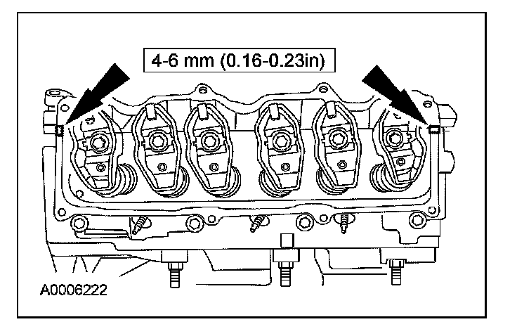 2. NOTE: If the RH valve cover is not secured within 4 minutes, the sealant must be removed and the sealing area cleaned with metal surface cleaner. Allow to dry until there is no sign of wetness or 4 minutes, whichever is longer. Failure to follow this procedure can cause future oil leakage.
