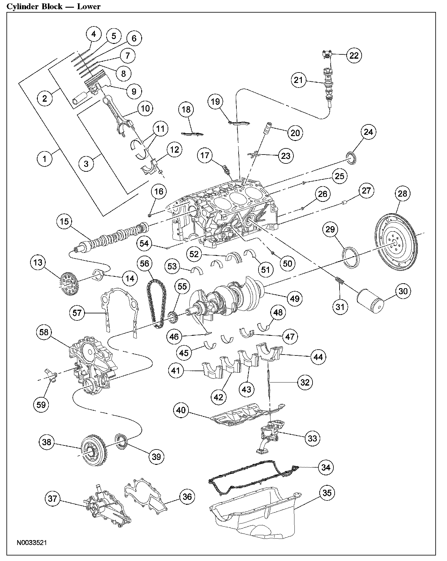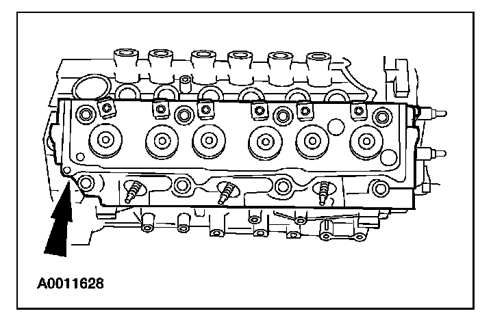 CAUTION: During engine repair procedures, cleanliness is extremely important. Any foreign material, including any material created while cleaning gasket surfaces that enters the oil passages, coolant passages or the oil pan, can cause engine failure.