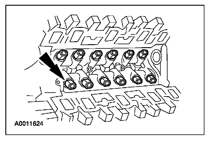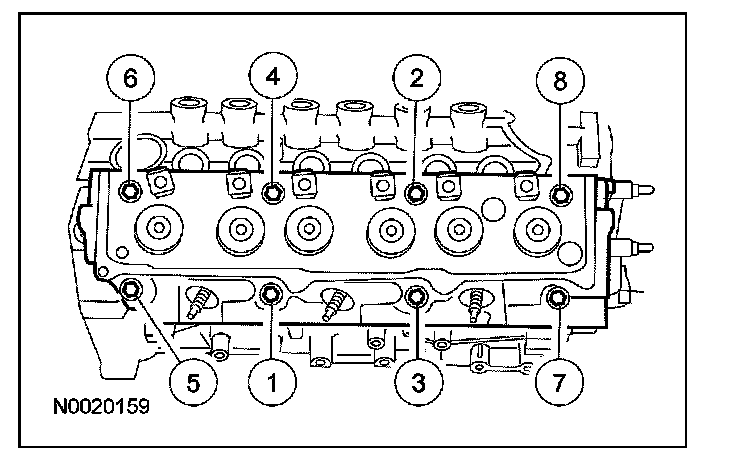 7. Install the 8 main bearing cap bolts in the sequence shown.