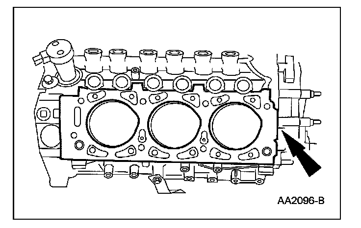21. NOTE: The "V" notch in the cylinder head gasket faces the front of the engine.