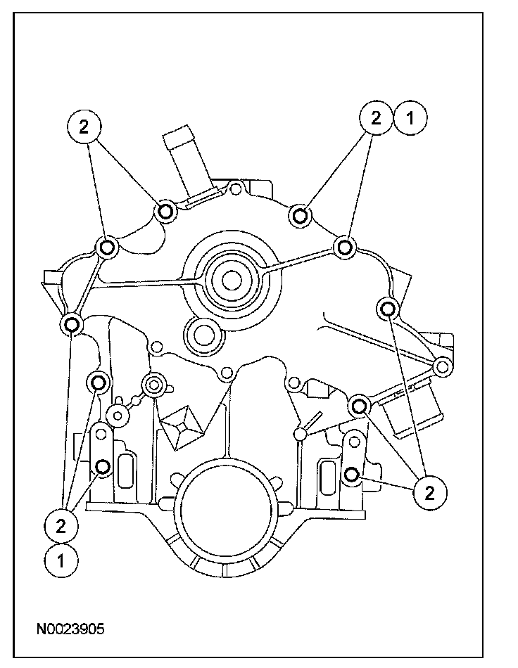 2. Install the 5 bolts and 5 stud bolts and tighten to 25 Nm (18 ft. lbs).