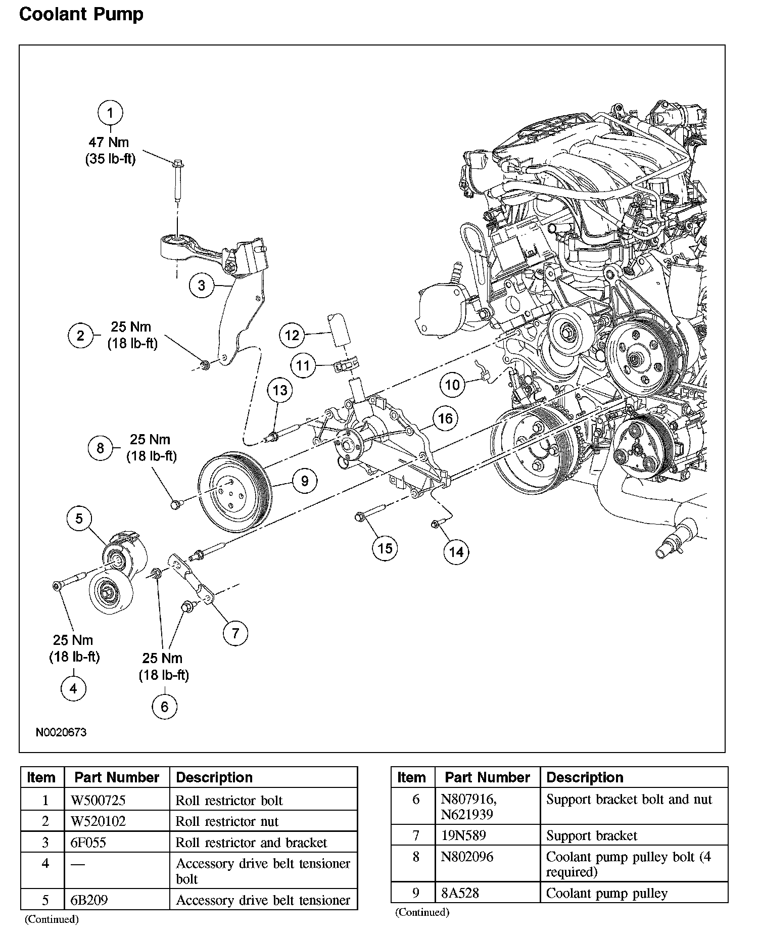 10. Tighten the 4 coolant pump pulley bolts to 25 Nm (18 ft. lbs).