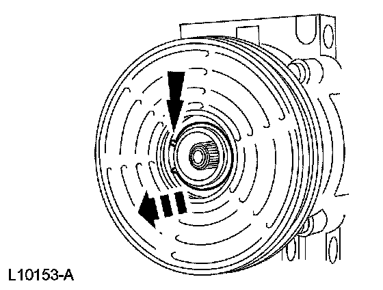 6. CAUTION: Do not use air tools. The A/C clutch field coil can be easily damaged.