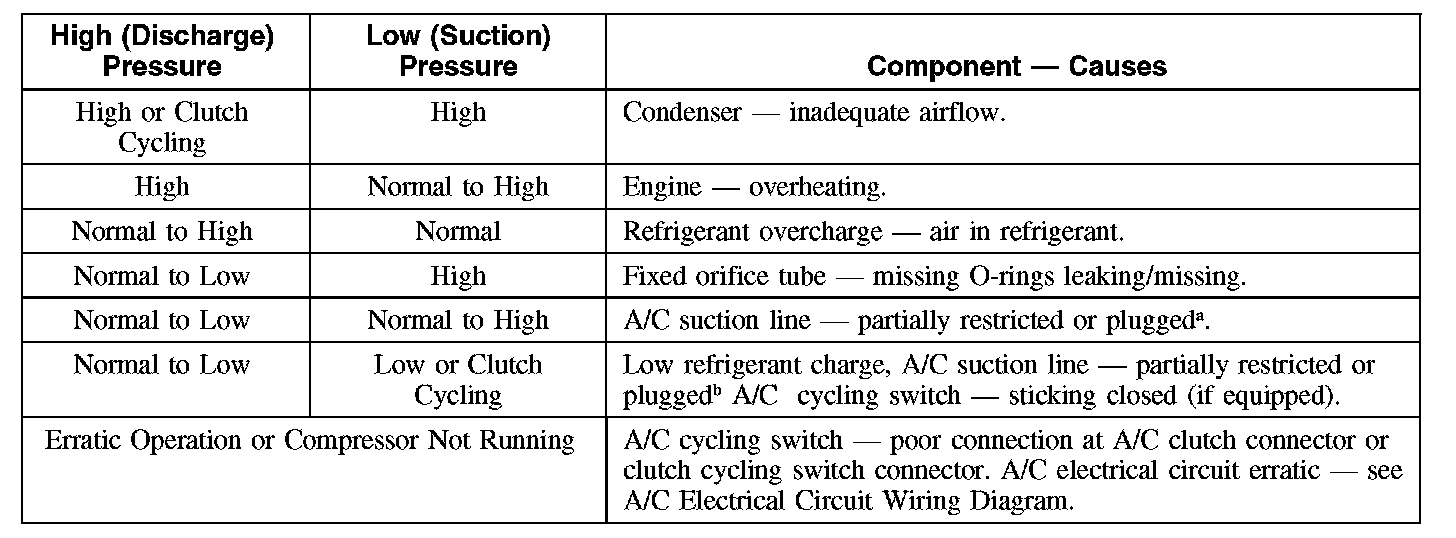 1. NOTE: The table is used to guide diagnosis of the refrigerant system if operating pressures are outside normal limits.