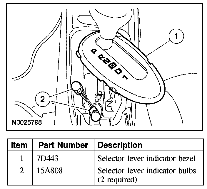 SELECTOR LEVER INDICATOR BULBRemoval and Installation