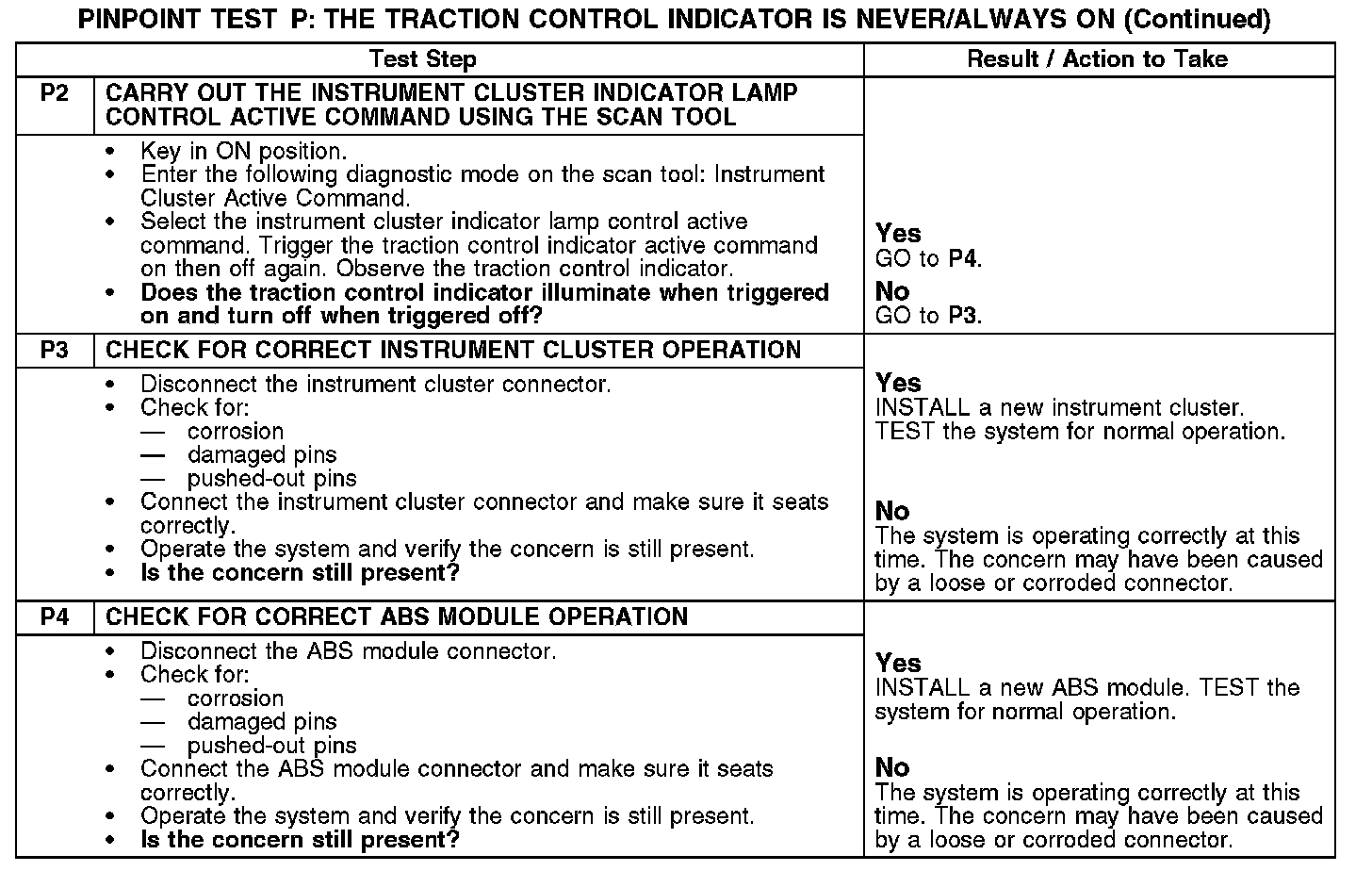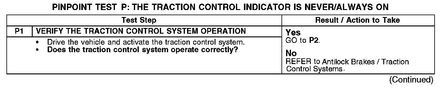 PINPOINT TEST P: THE TRACTION CONTROL INDICATOR IS NEVER/ALWAYS ONP1:
