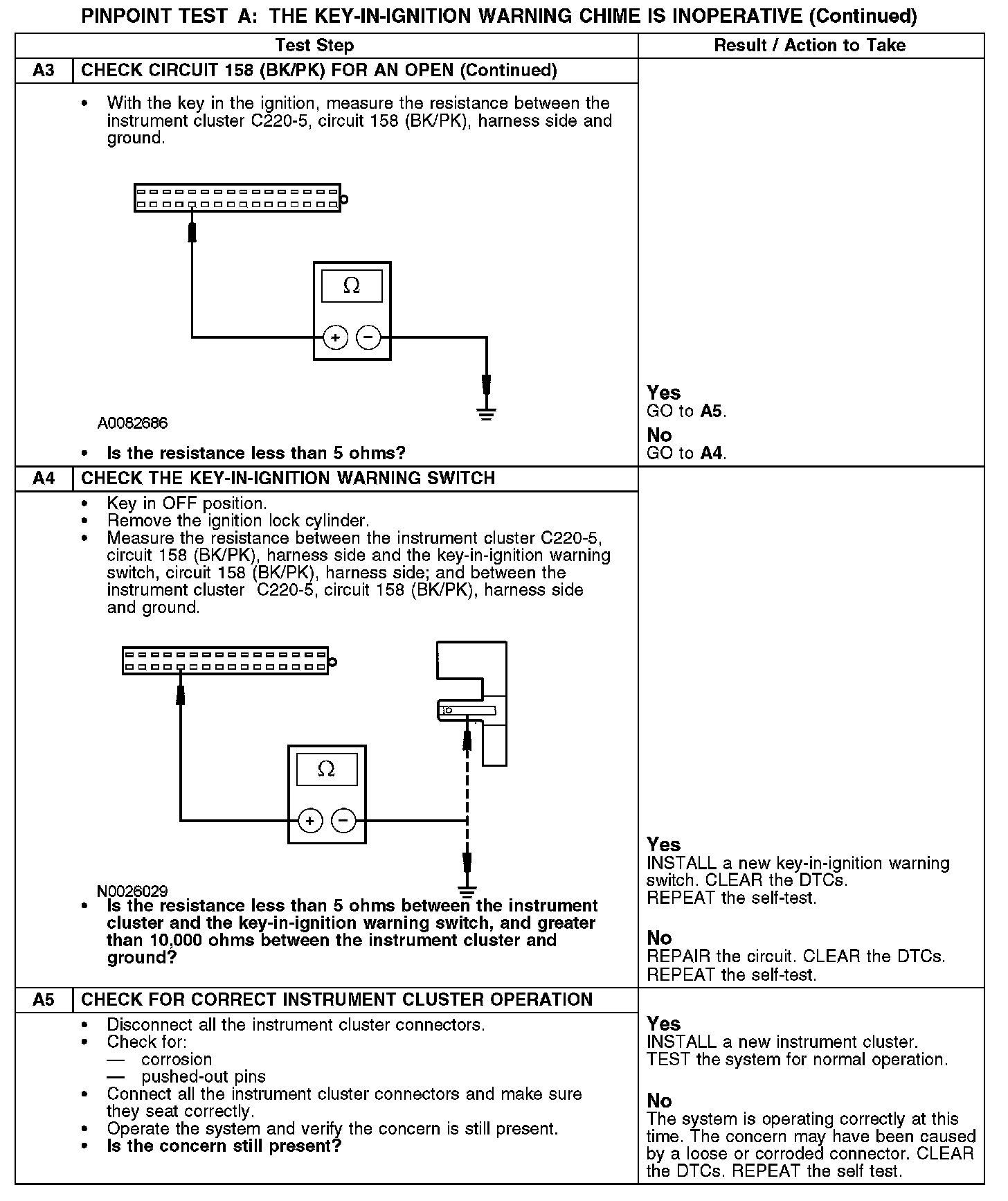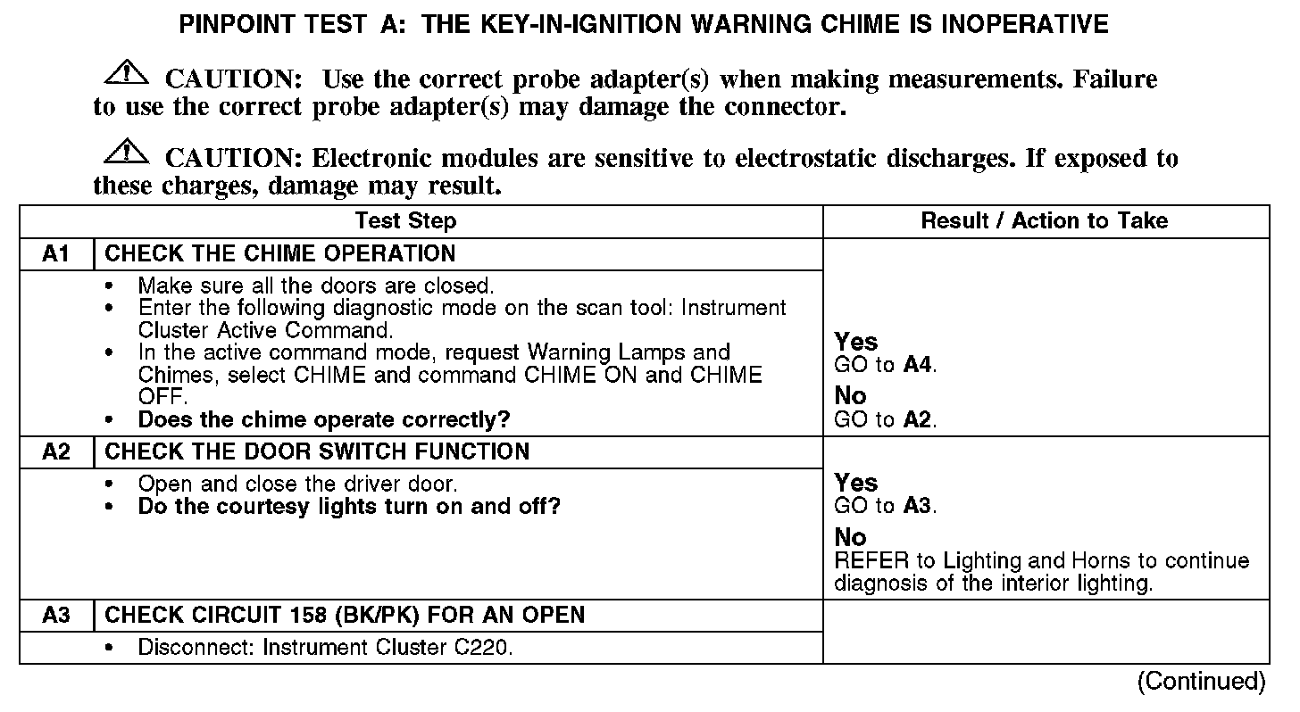 PINPOINT TEST A: THE KEY-IN-IGNITION WARNING CHIME IS INOPERATIVEA1-A3: