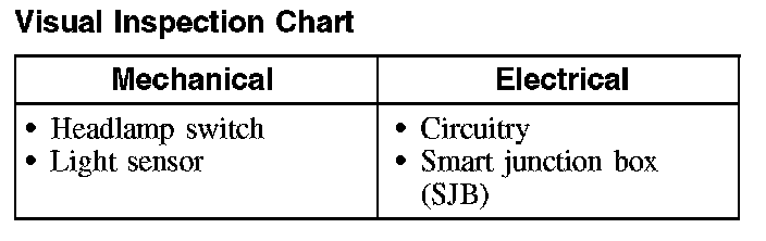 9. If the DTCs retrieved are related to the concern, go to the Smart Junction Box (SJB) Diagnostic Trouble Code (DTC) Index. For all other DTCs, refer to Body Control Systems (Multifunction Electronic Control Module). Autolamps