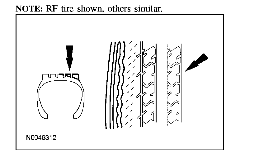1. Inspect the tires for signs of uneven wear. Refer to these descriptions to identify the type of wear and the Symptom Chart for the appropriate repair action to be carried out. Symptom Related Diagnostic Procedures