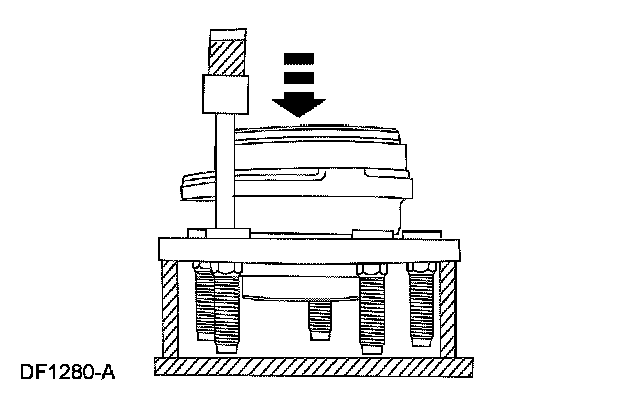 2. Position the wheel hub in a suitable press. Support the flange on each side of the wheel stud and remove the wheel stud.