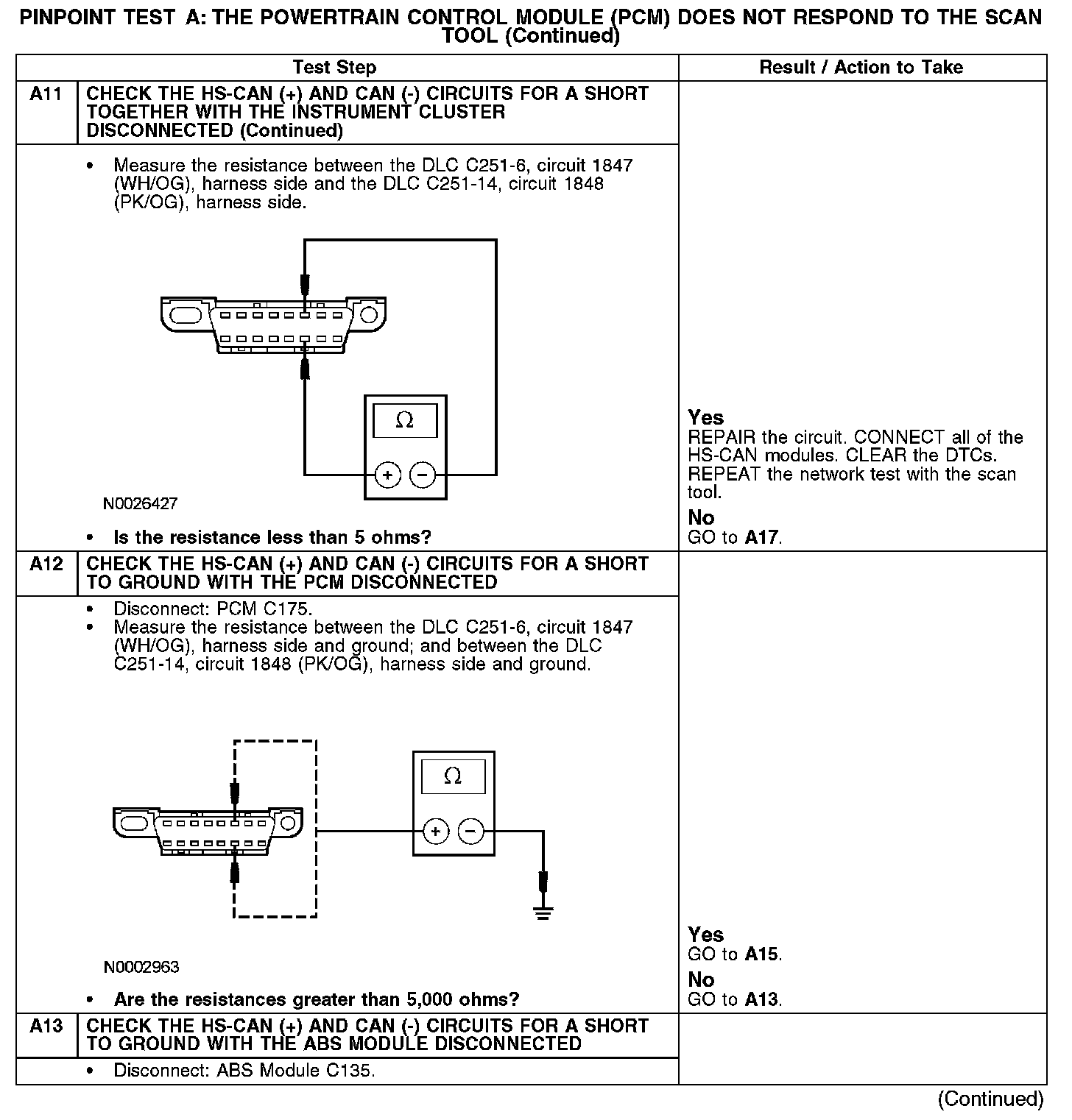 - Circuit 1847 (WH/OG) (HS-CAN +) and circuit 1848 (PK/OG) (HS-CAN -) shorted together