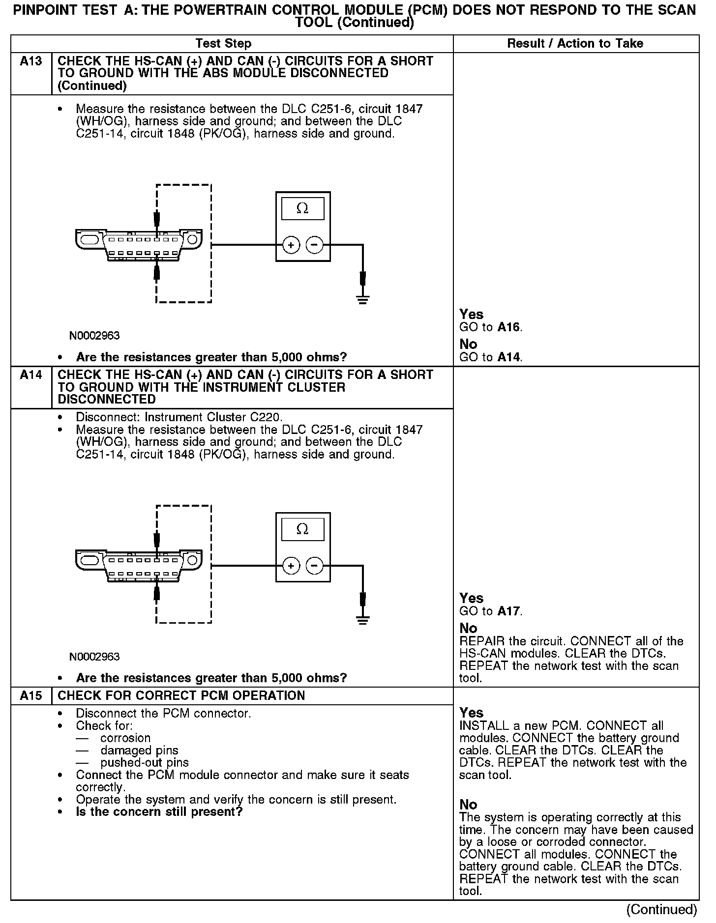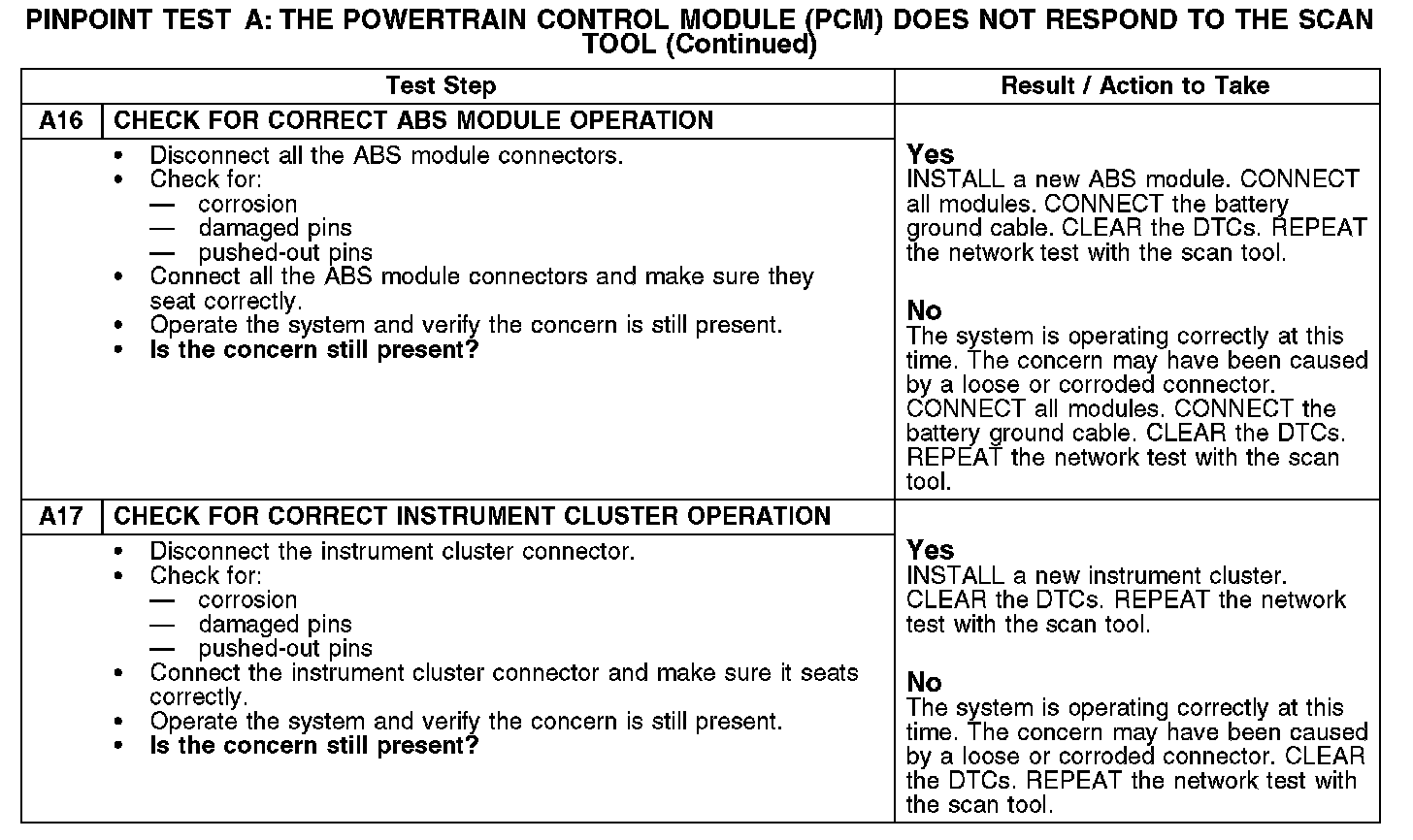 PINPOINT TEST A: THE POWERTRAIN CONTROL MODULE (PCM) DOES NOT RESPOND TO THE SCAN TOOLA1: