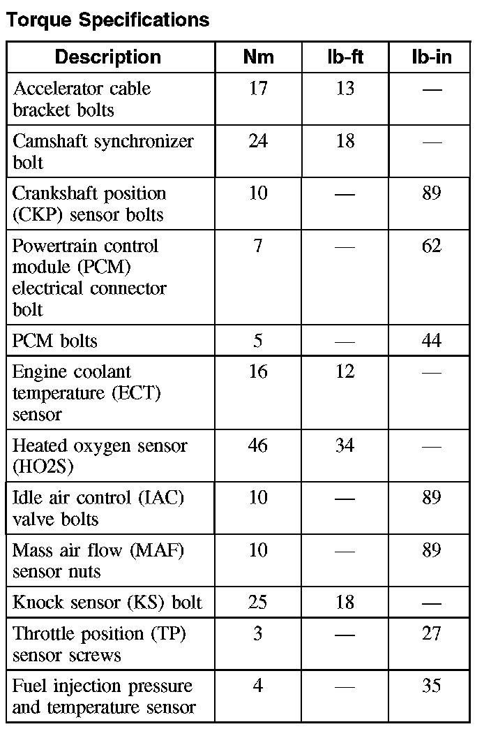 Torque Specifications: