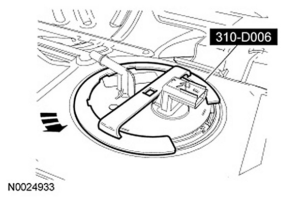 19. Using the special tool, remove the fuel pump module retaining ring.
