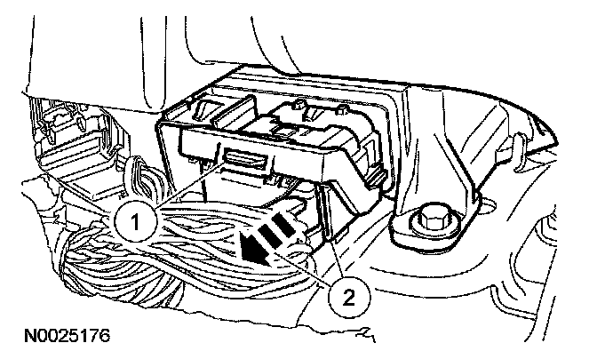 3 While releasing the retaining tab, pull out and disconnect the small RCM electrical connector.
