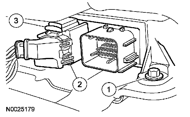 2. Remove the right hand side restraints control module (RCM) retaining bolts.