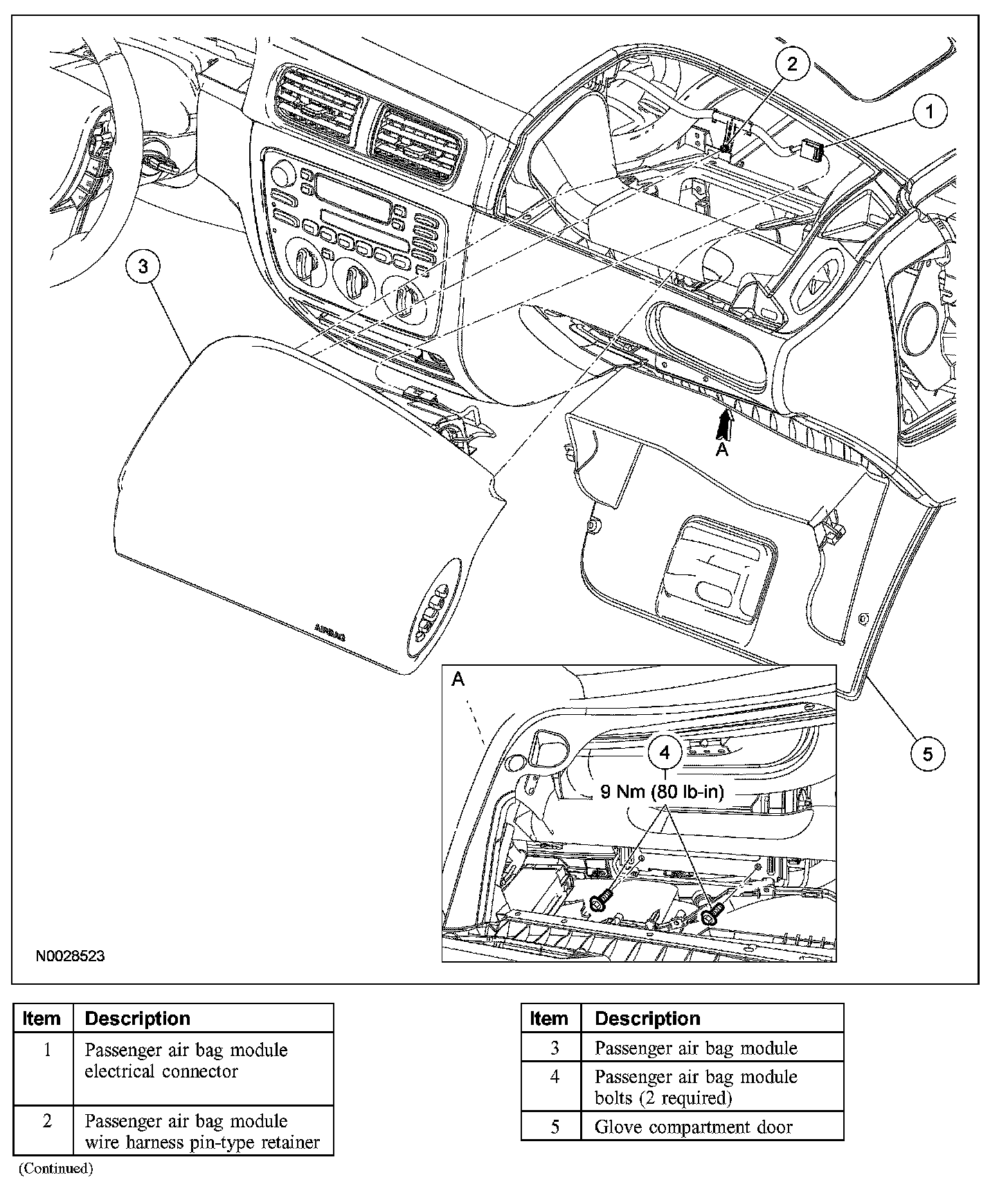 5. Remove the passenger air bag module and trim cover.