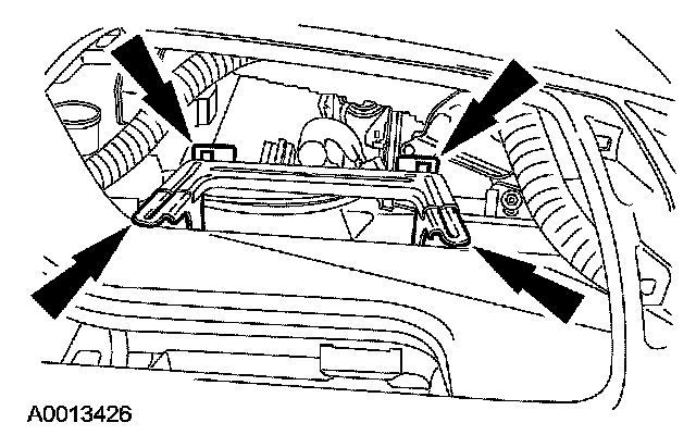 3. Through the glove compartment opening, remove the 2 passenger air bag module bolts.