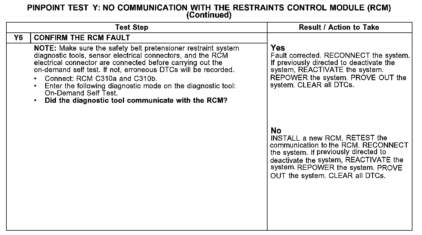 Test Y: No Communication With the Restraints Control Module (RCM)