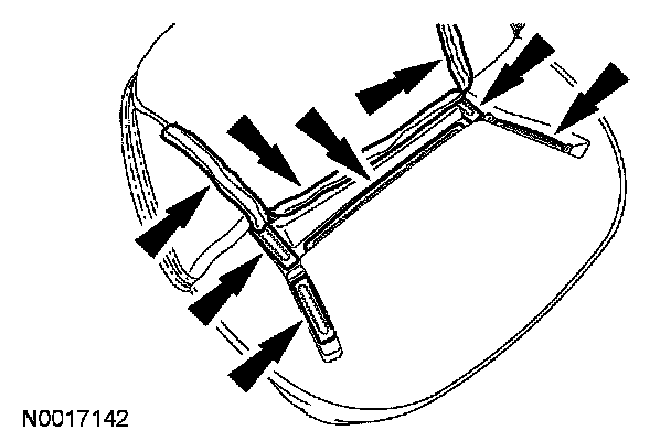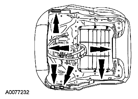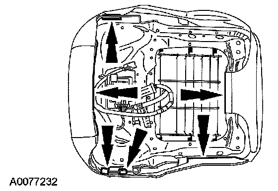 10. CAUTION: Inspect the seat cushion pad and frame for any foreign objects before installing the seat cushion pad to the seat cushion frame. If any foreign objects are found, remove them. Failure to do so may result in personal injury, in the event of an air bag deployment.