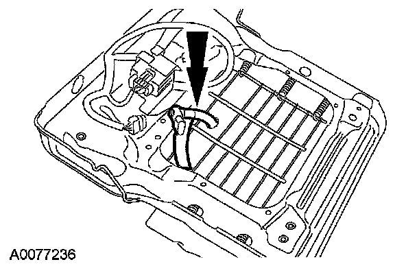 1 Install the pressure sensor onto the seat cushion frame bracket, making sure the retaining ear is completely engaged.