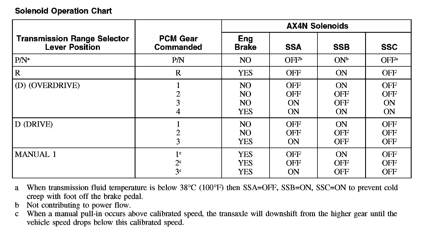 Solenoid Operation Chart: