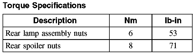 Torque Specifications: