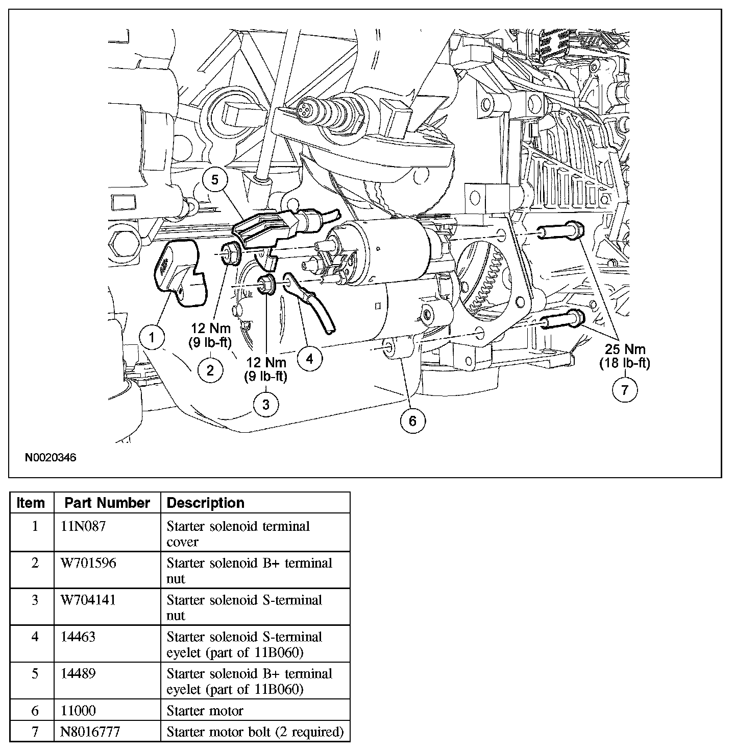 - When working in area of the starter motor, be careful to avoid touching hot exhaust components. Failure to follow these instructions can result in personal injury.