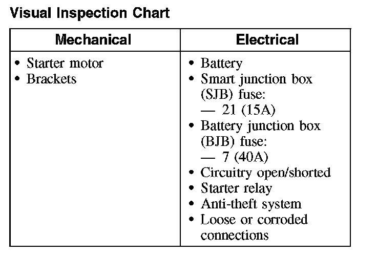 NOTE: The anti-theft system must be functioning correctly before a logical starting system diagnosis can be carried out. Address anti-theft system concerns before continuing.