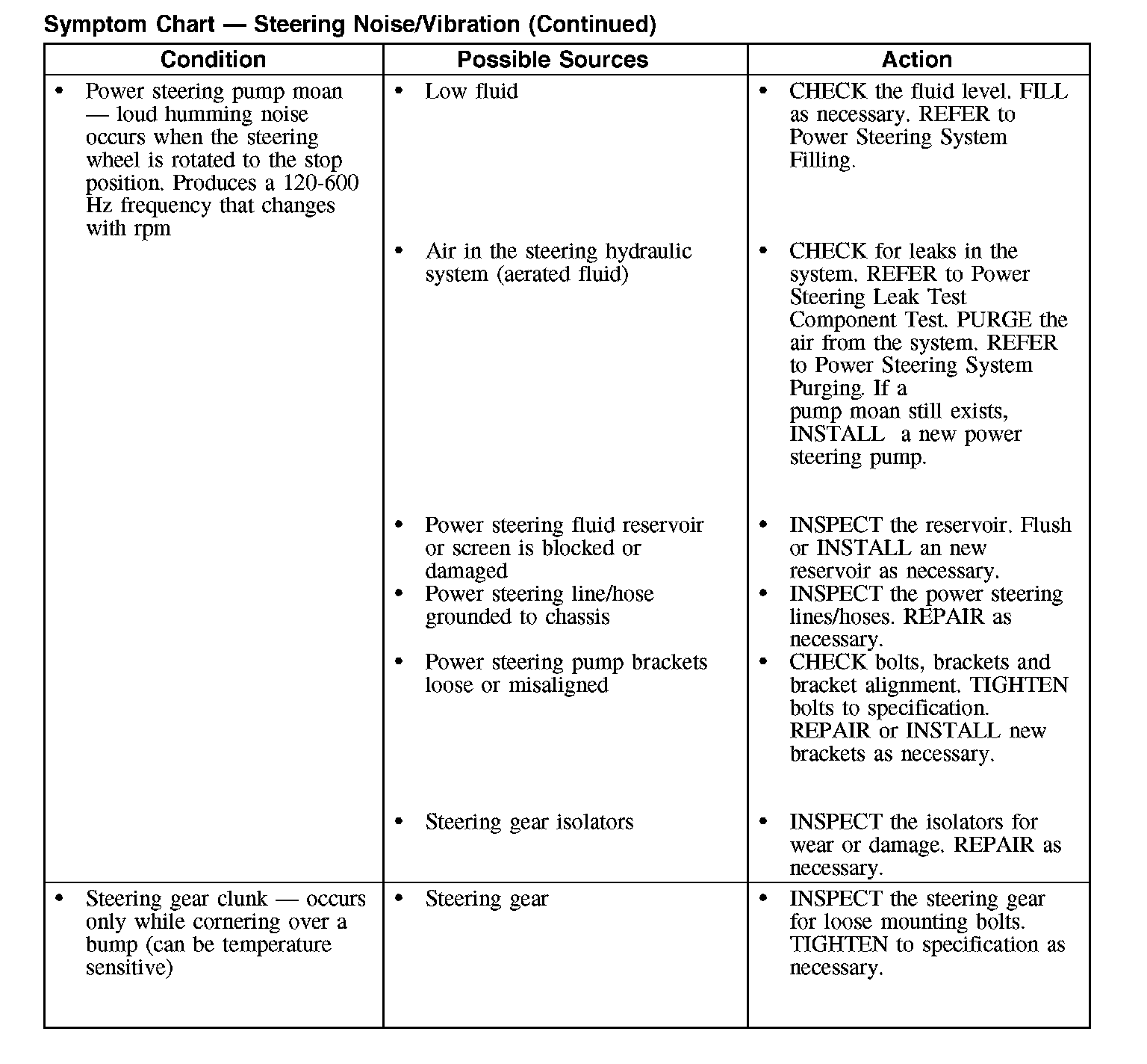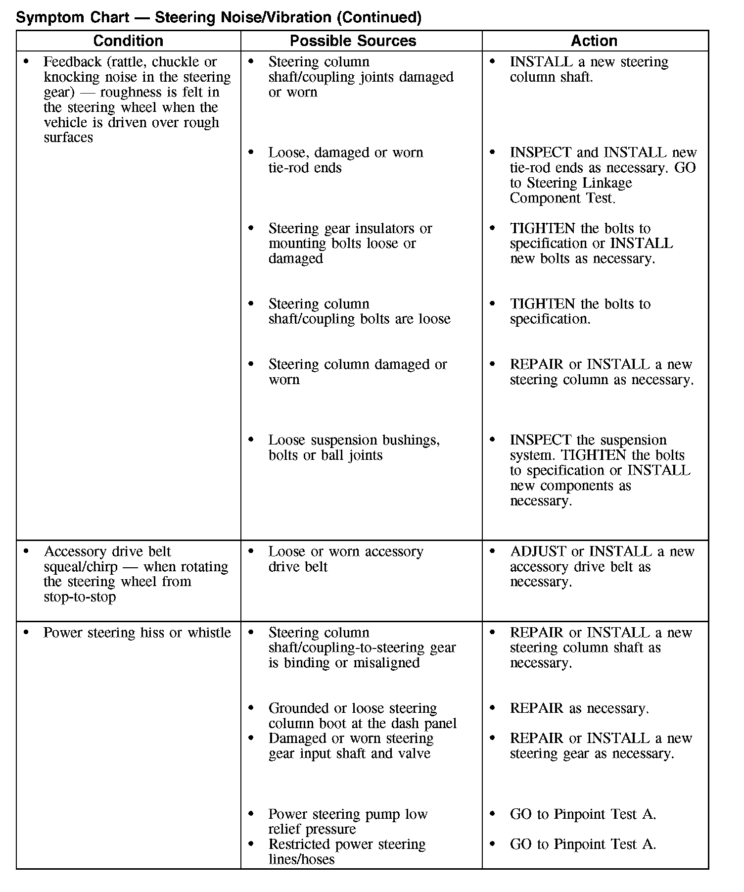 Symptom Chart - Steering Noise/Vibration (Part 4):