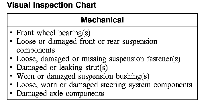 ^ Check for aftermarket changes to the steering, suspension, wheel and tire components (such as competition, heavy duty, etc.) The specifications shown do not apply to vehicles equipped with aftermarket equipment.