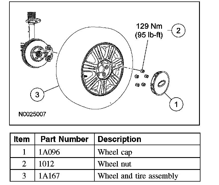 ^ Tighten the wheel nuts to 129 Nm (95 ft lbs) in a star-pattern sequence.