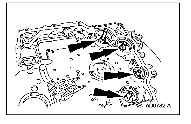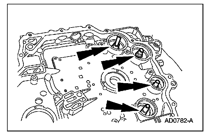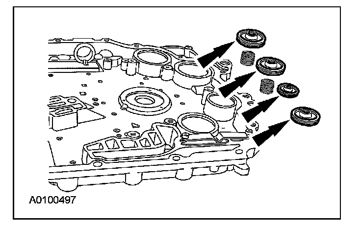 7. NOTE: The use of petroleum jelly will hold the accumulator piston shafts in place while assembling the chain cover.