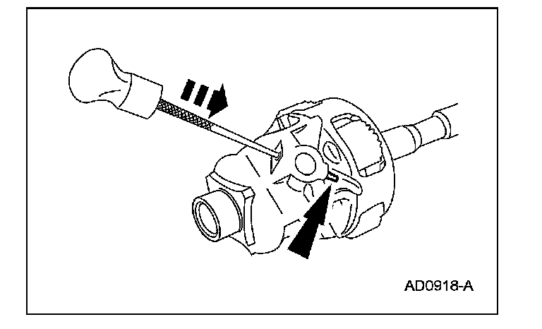 6. Install the differential pinion shaft roll pin.