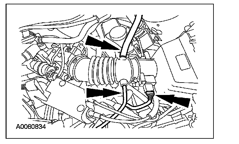 33. Reconnect the mass air flow (MAF) sensor and the breather tubes.
