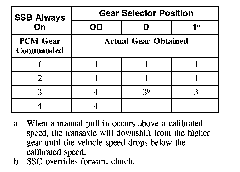 Shift Solenoid Failure Mode Chart "Always Off"