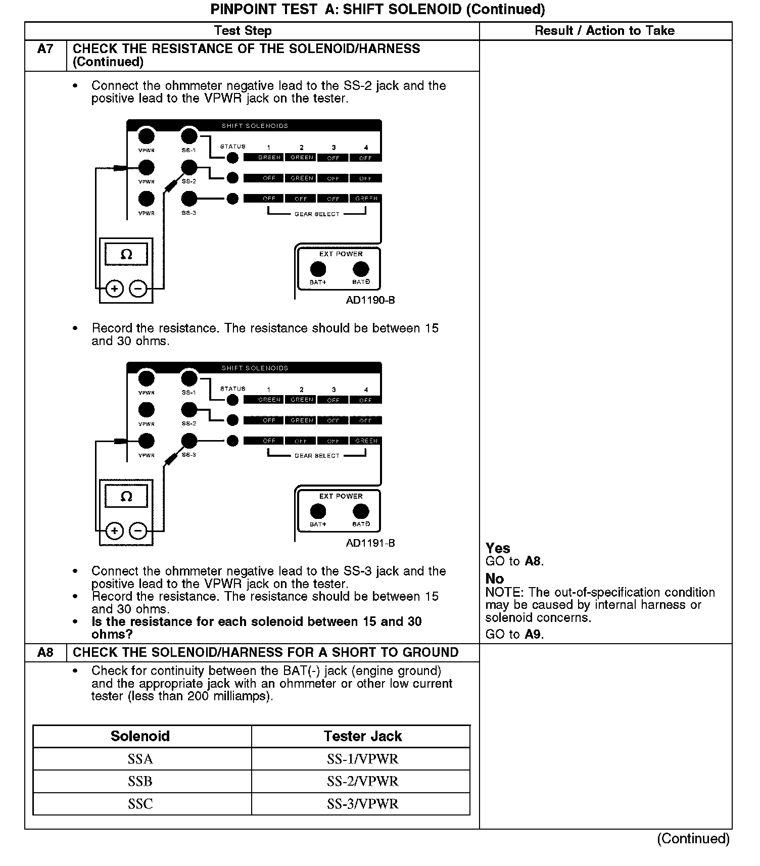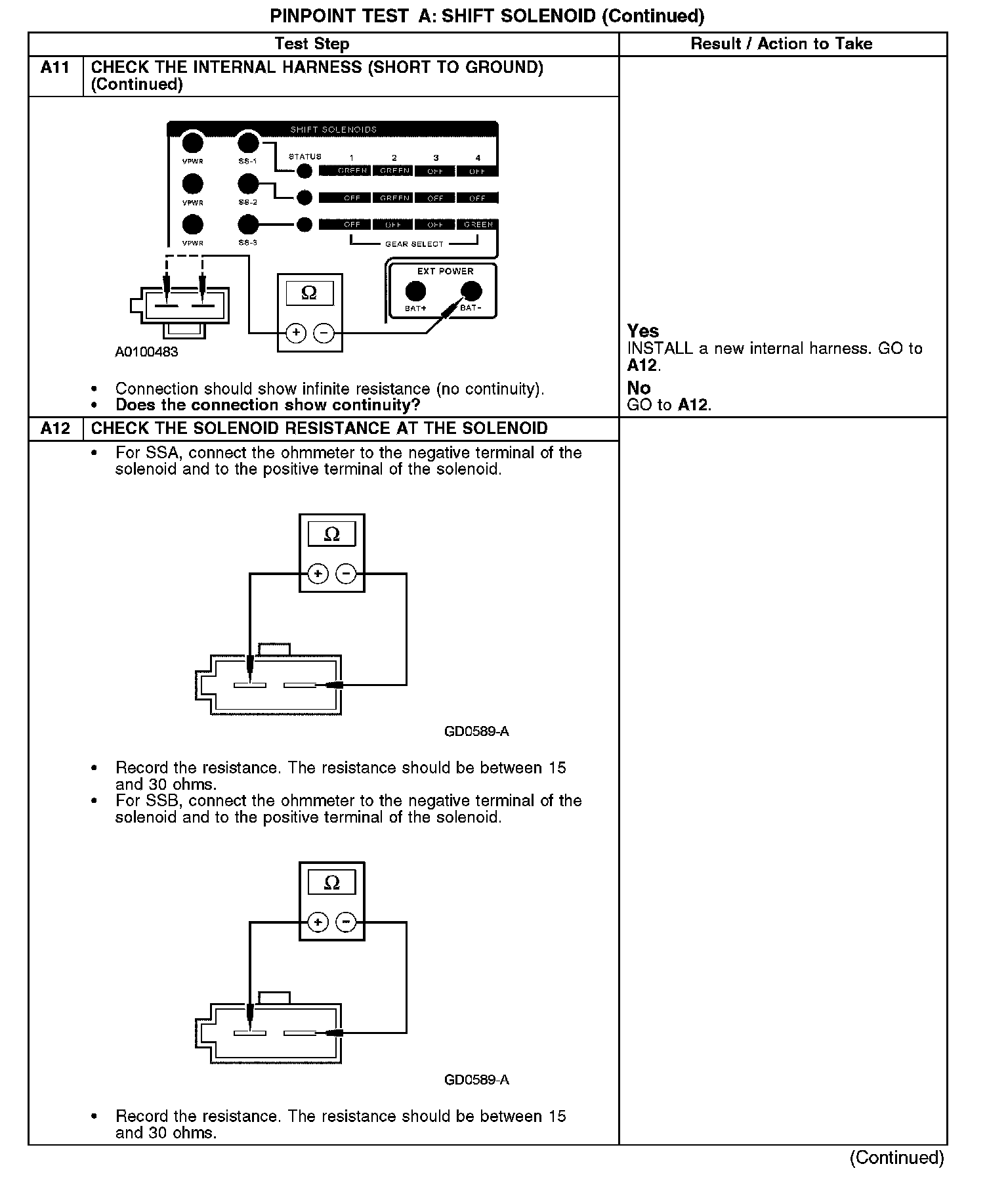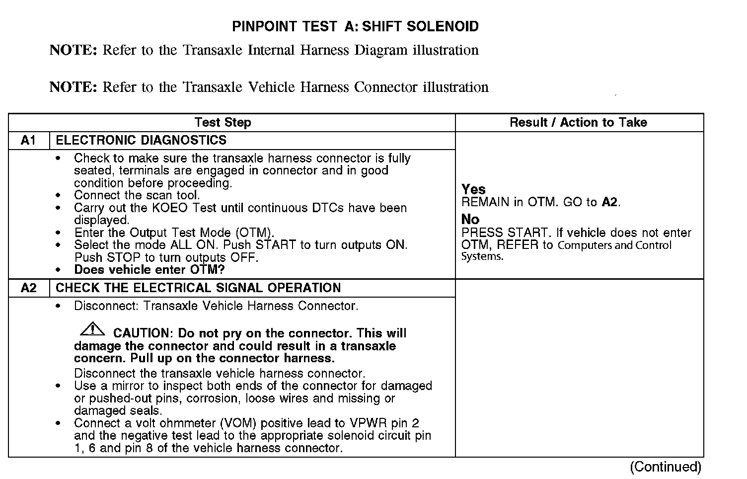 PINPOINT TEST A: SHIFT SOLENOID