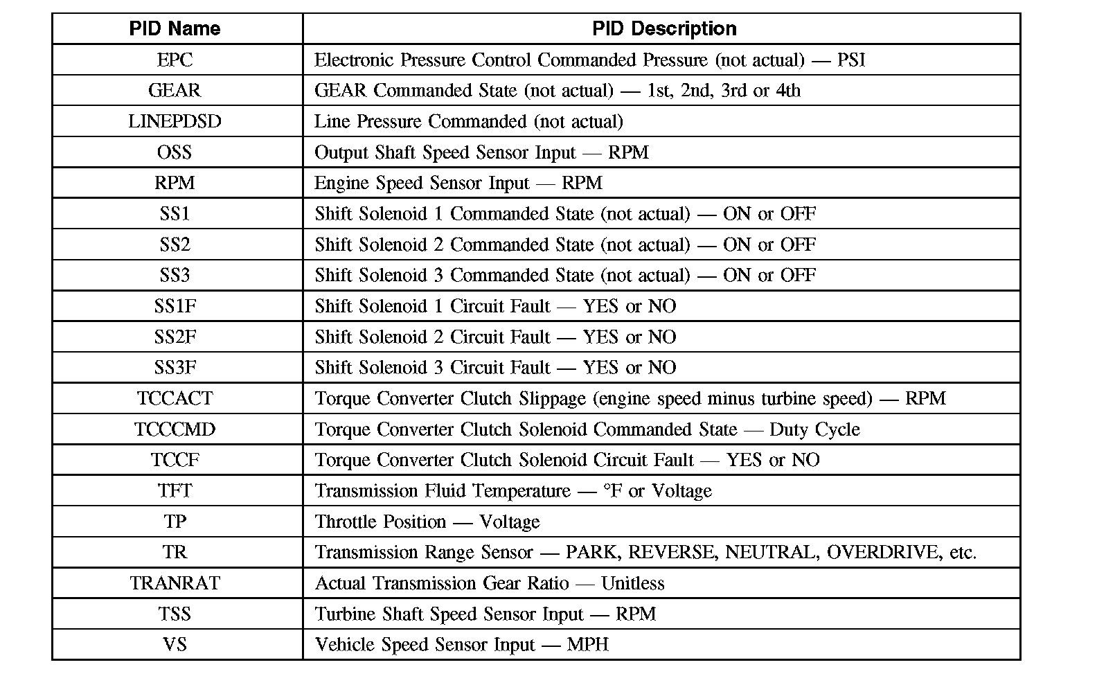 ^ Vehicle speed must be greater than 48 km/h (30 mph) to command an upshift to 4th gear.