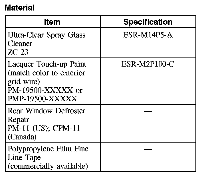 - If the brown color under the grid line is damaged or missing (this is very rare), it is necessary to apply acrylic lacquer touch-up paint for color match. This paint must meet specification ESR-M2P100-C and should be applied to the glass prior to applying the rear window defroster repair compound.