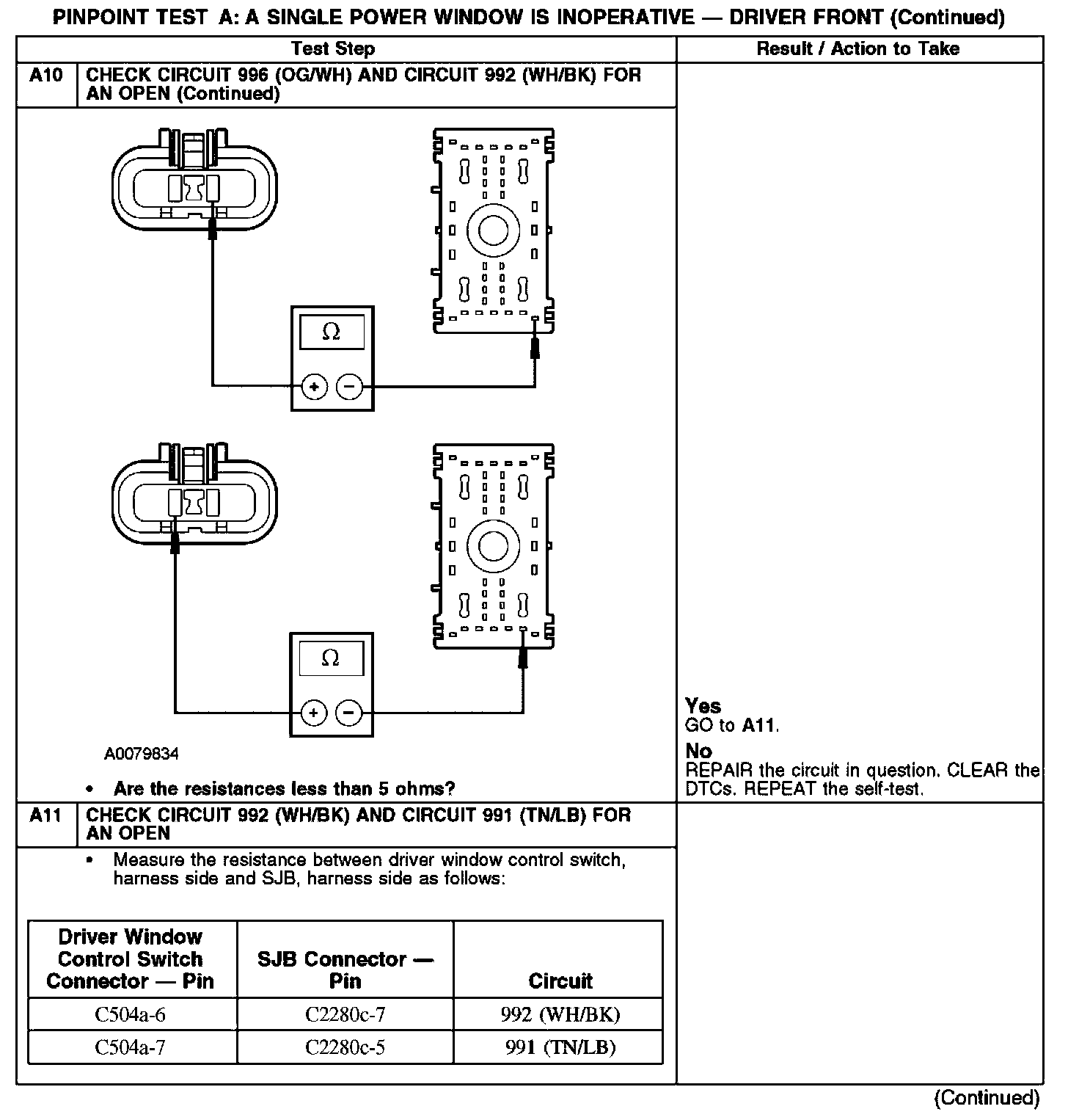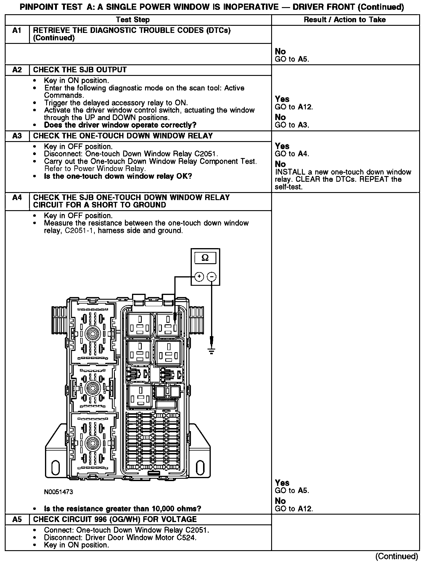 Test A: A Single Power Window Is Inoperative - Driver Front